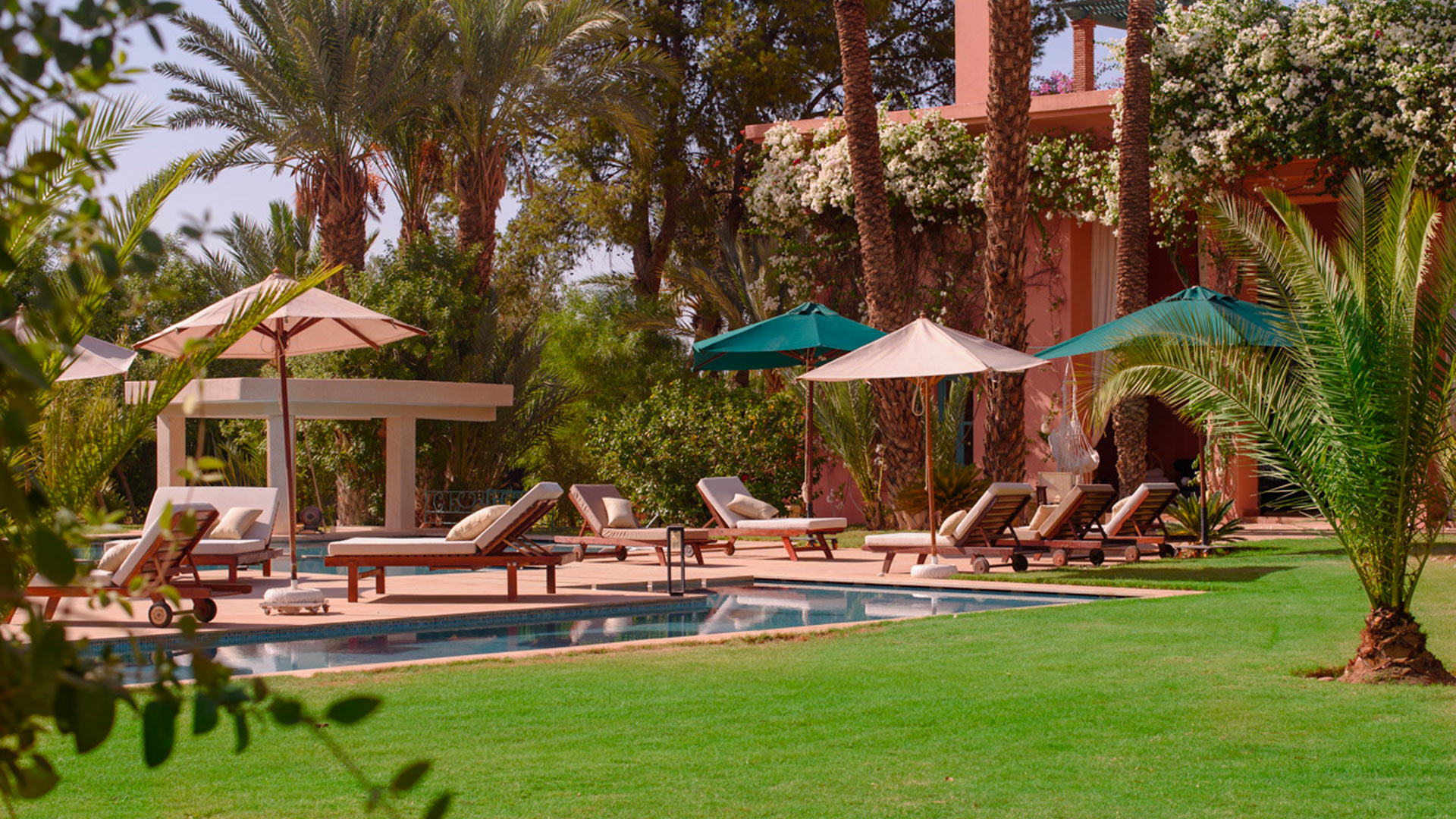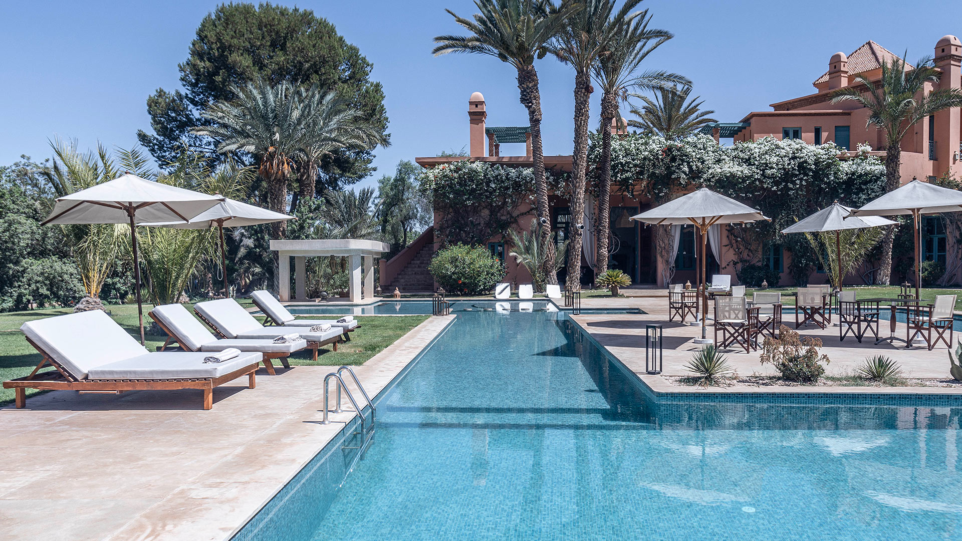 La Villa Sourya, nichée au cœur de la palmeraie de Marrakech, est une splendide demeure conjugant charme traditionnel et confort moderne. Imaginez-vous flâner dans ses jardins luxuriants ou vous détendre au bord de sa piscine élégante. Avec ses intérieurs raffinés et son personnel dévoué, chaque moment devient une expérience unique.